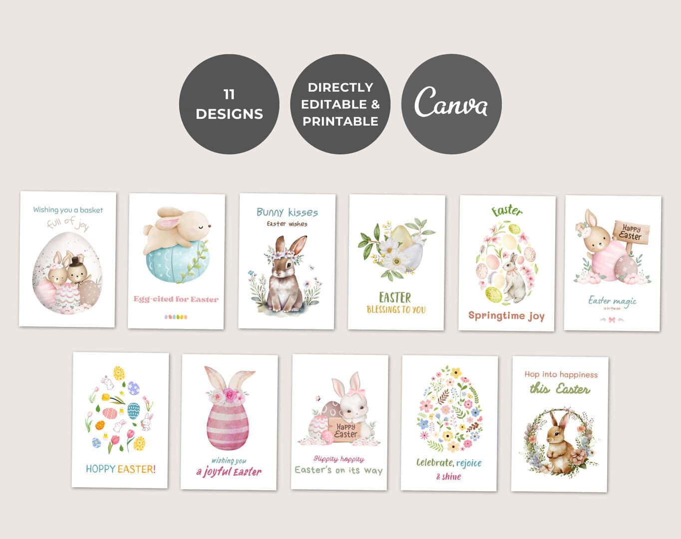 Celebrate the joy of Easter with this Easter Card Kit, featuring 11 beautifully designed Easter cards! All of the designs can be used with a free Canva account. Whether you’re looking for a Happy Easter card, a charming Easter bunny card, or a colorful Easter egg card, this collection has the perfect design for every loved one. These Easter greeting cards are ideal for spreading holiday cheer, making them a thoughtful Easter gift for friends and family.