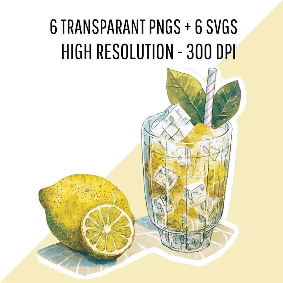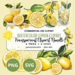 High-resolution Watercolor Lemon Clipart PNG + SVG bundle