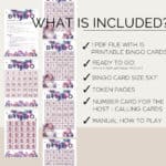 With your download, you’ll receive not only the bingo cards but also a how-to-play manual, tokens, calling cards, and a number card for the host. Everything you need for a smooth and fun game!