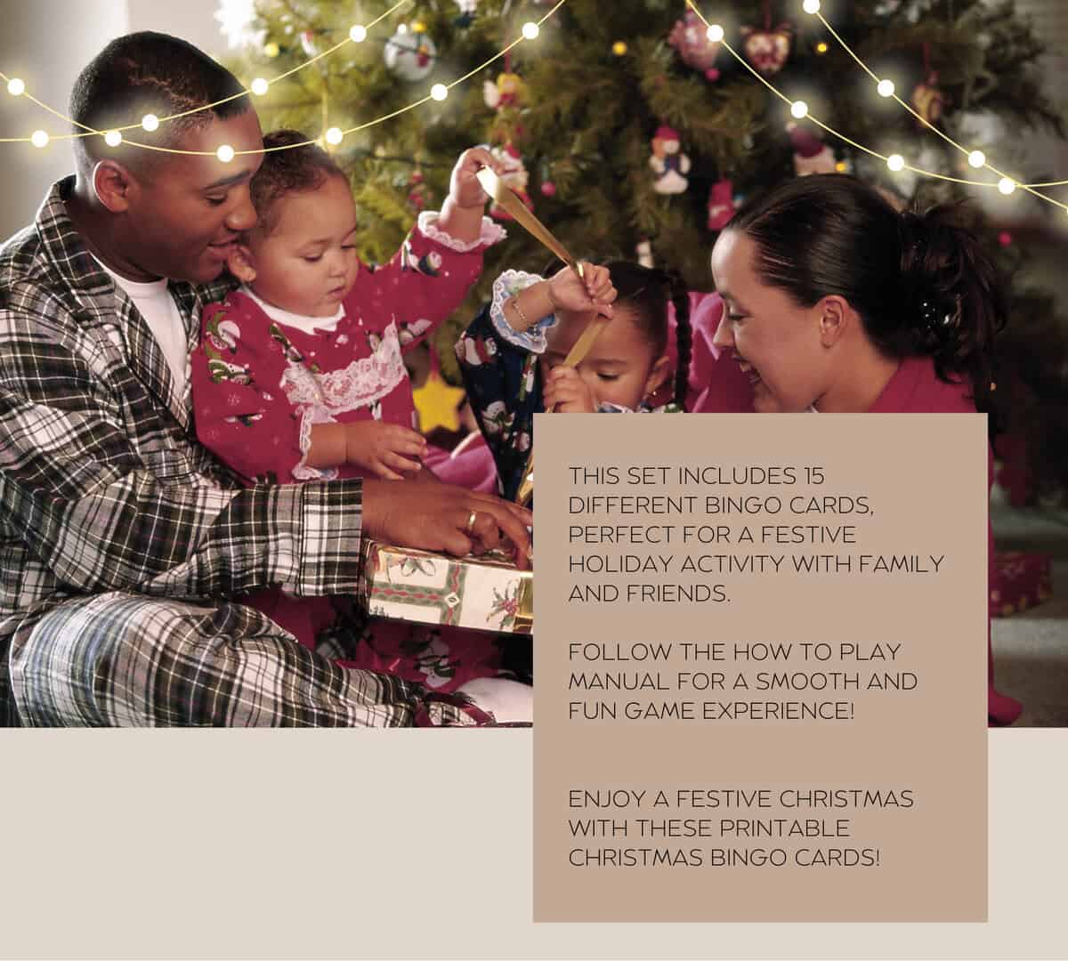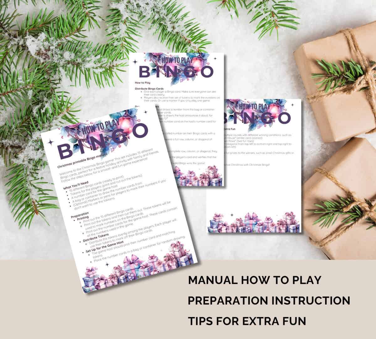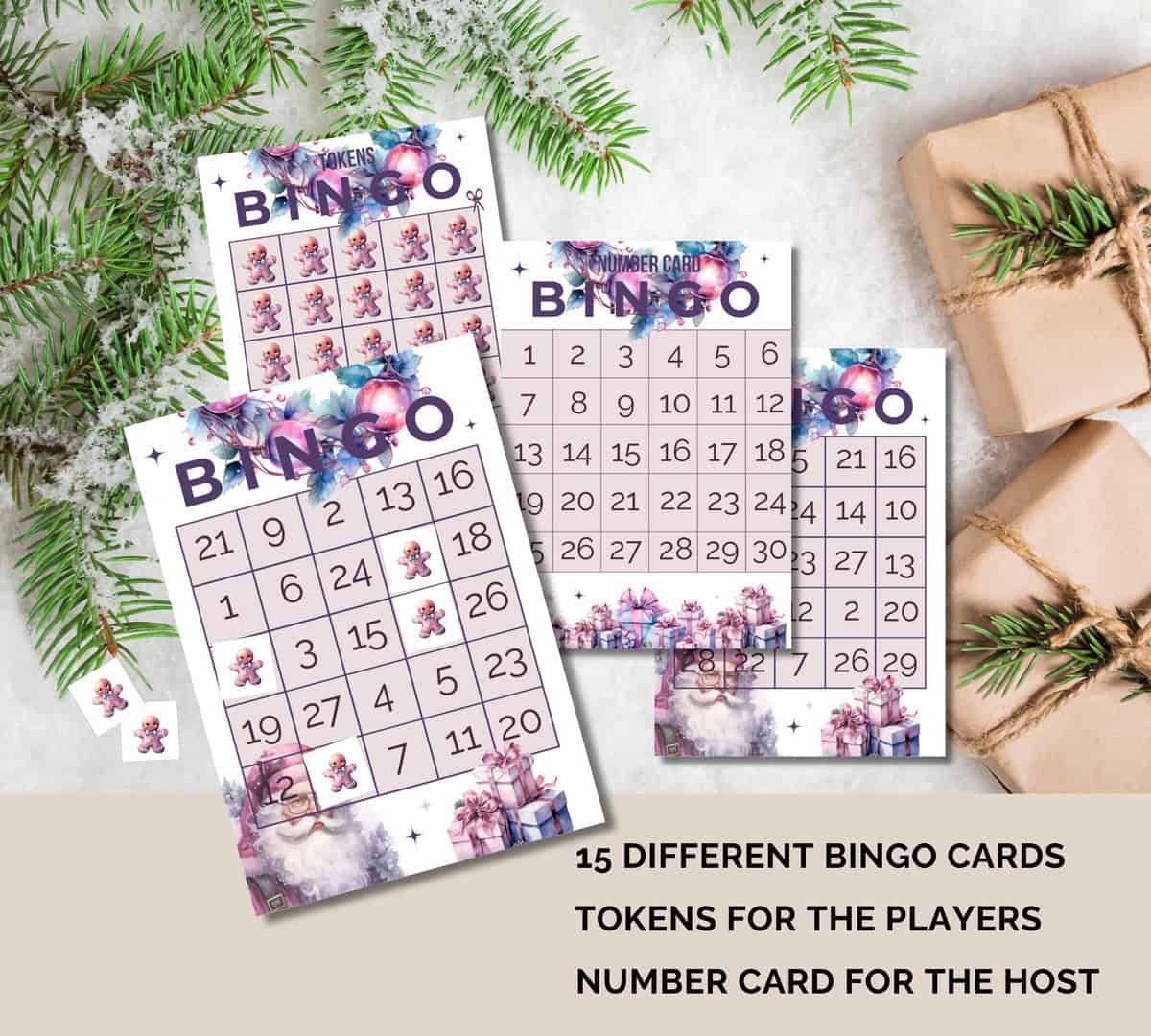 Christmas printable Bingo – 15 unique Bingo Cards + Tokens + How to Play Guide