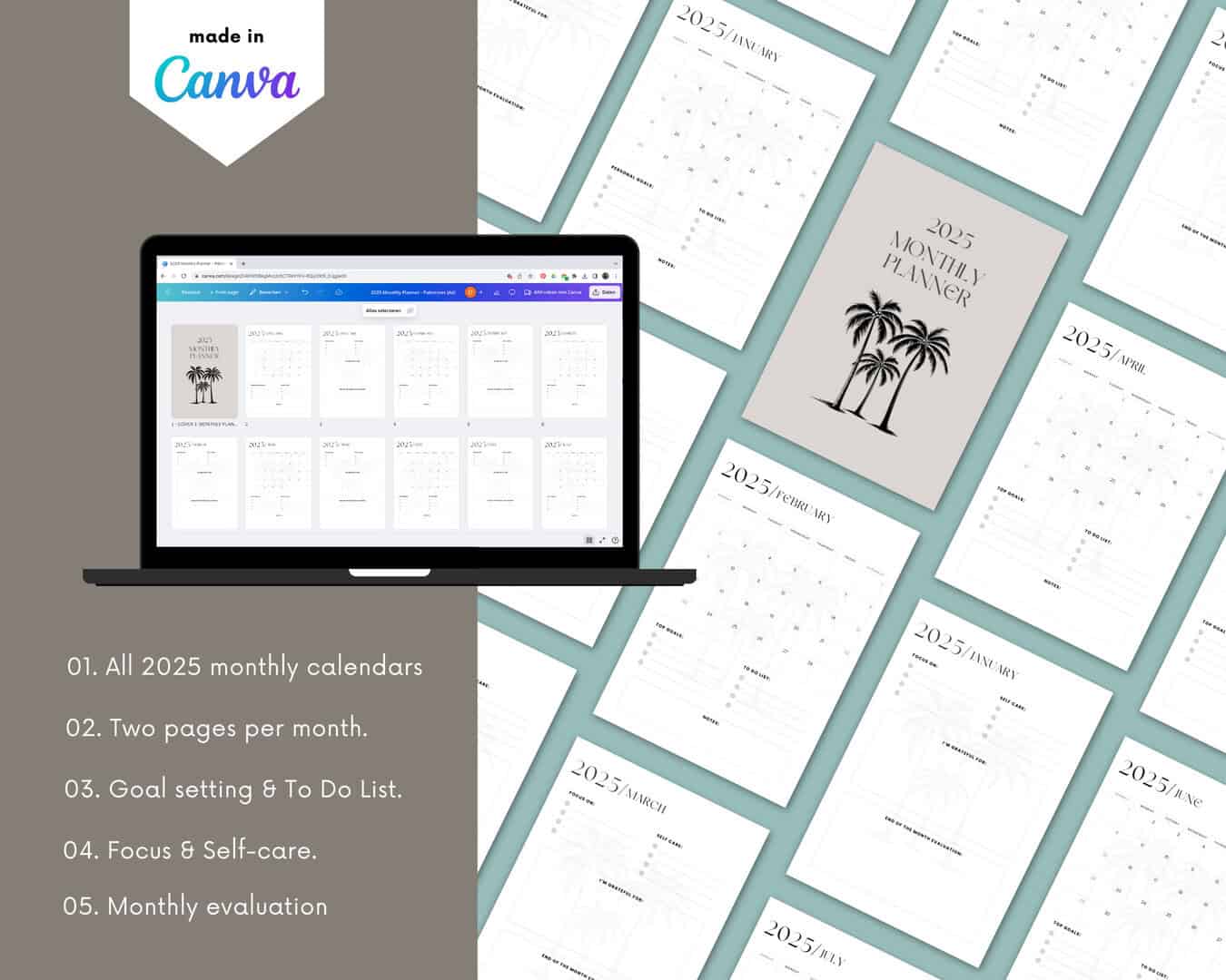 🌴 2025 Monthly Planner – Digital Download 🌴