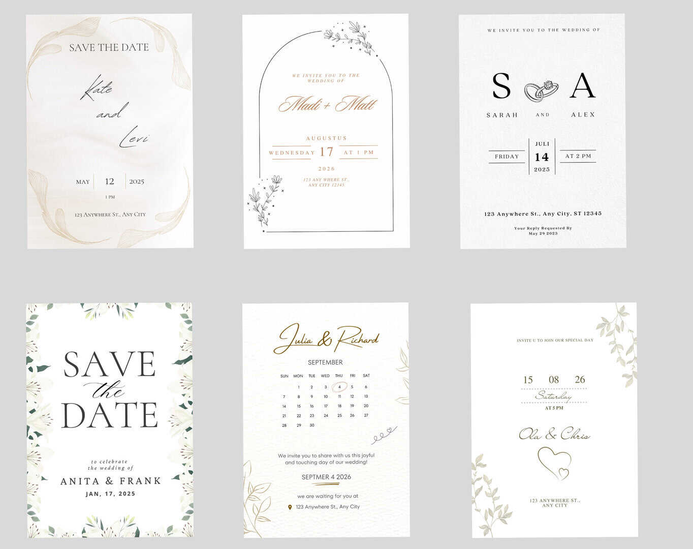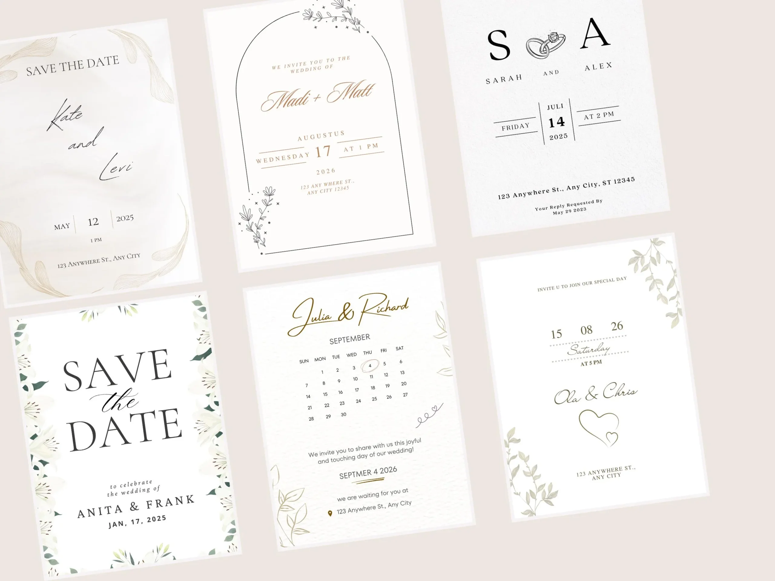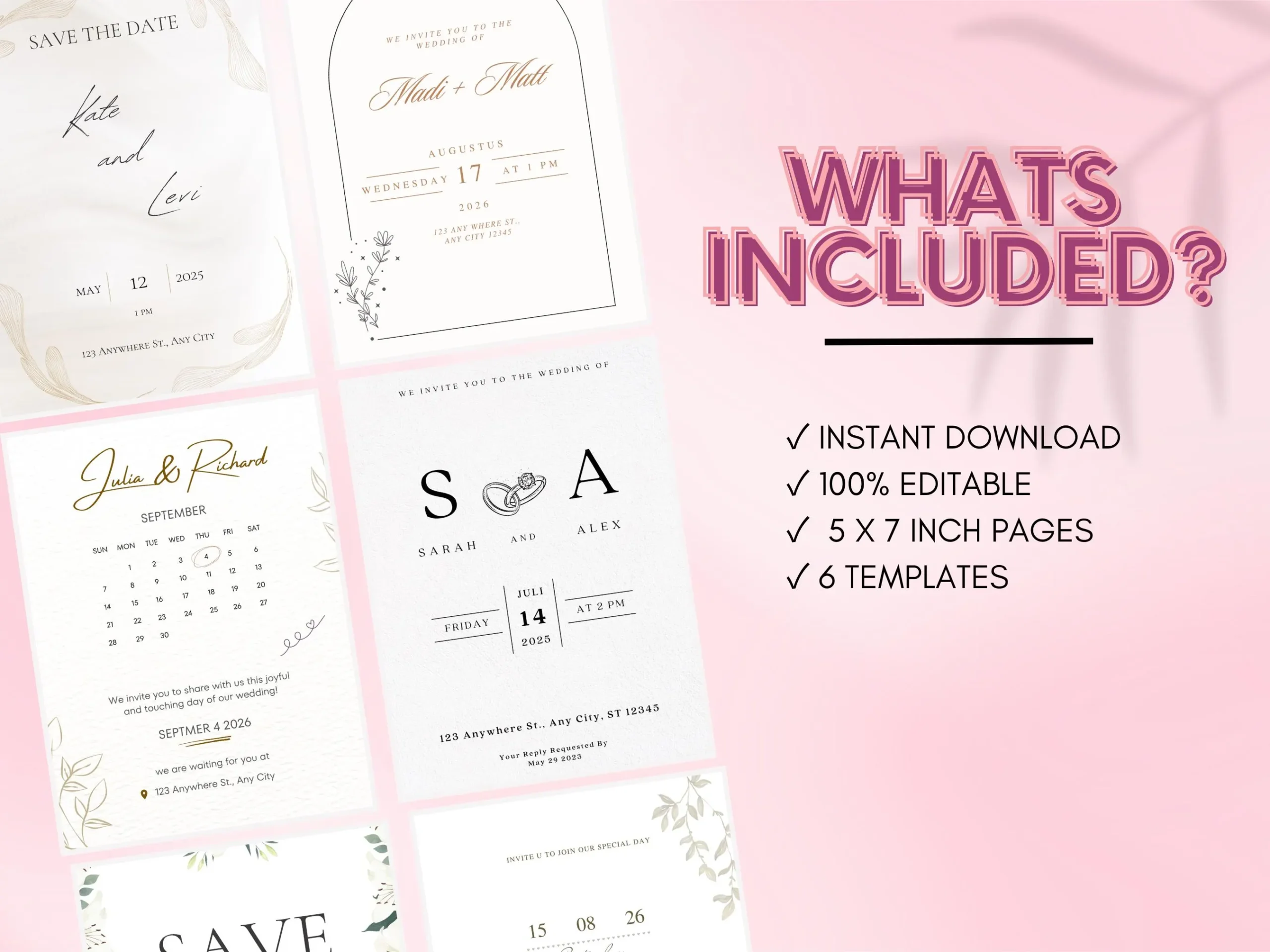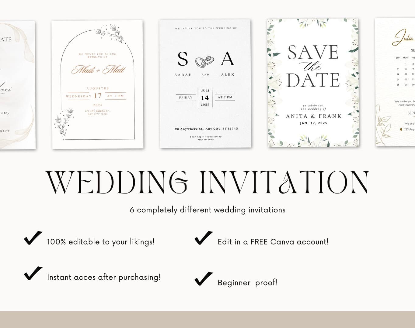 6 100% Beautiful Neutral Minimal Wedding Invitation Bundle | Save The Date Wedding Invitation Detail Card Byndle | 5×7 inch Invitations