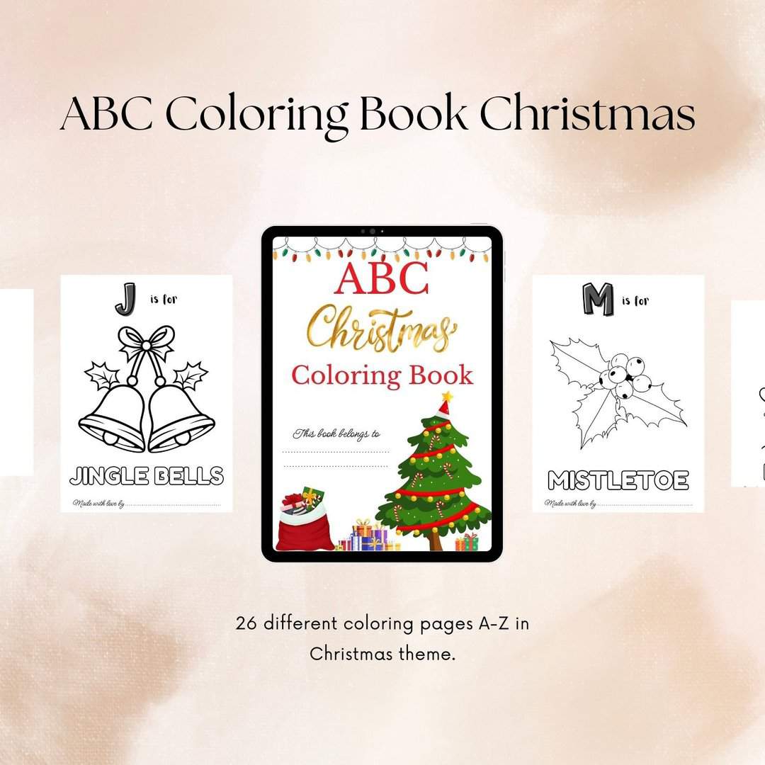 ABC coloring book Christmas edition | Fun printable ABC coloring sheets with Christmas-themed pages for kids
