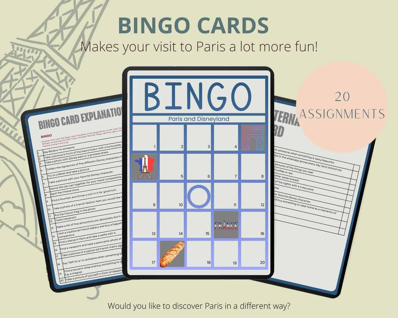 Make your trip to Paris or Disneyland Paris extra fun with these unique Bingo Cards filled with exciting challenges!