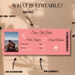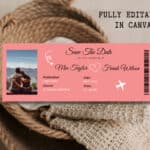 Are you planning a destination wedding and looking for the perfect way to announce your special day? Our Save the Date Boarding Pass is the ideal solution! This Destination Wedding Invitation template offers a unique and creative way to invite your guests to join you on your journey of love.