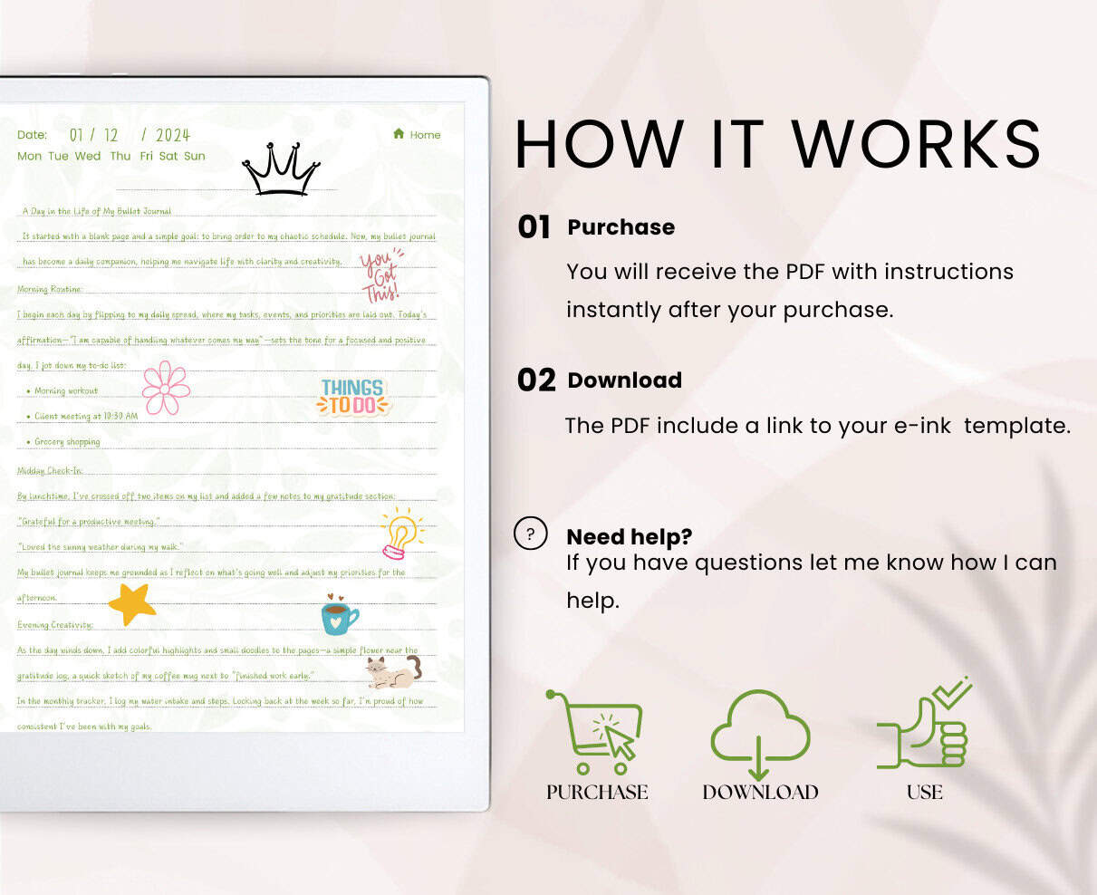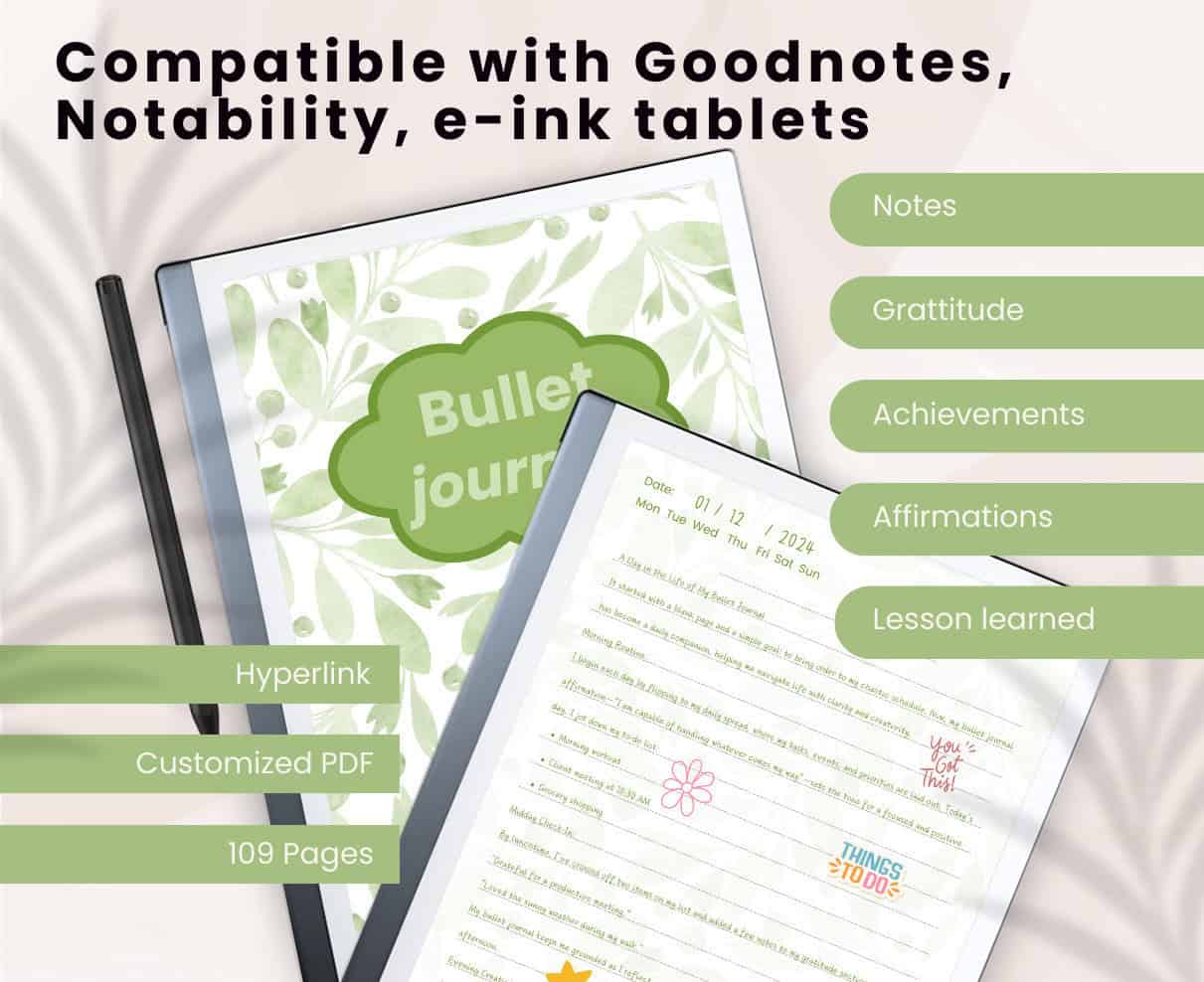 Bullet journal pages, bullet journal template, undated journal, undated bujo, bujo spread, daily journal, digital bullet journal, e-ink planner, journal templates, Self care planner, Digital journal, interactive PDF, Goodnotes planner, digital notes, ipad digital notes, Notability template, self care journal, undated planner