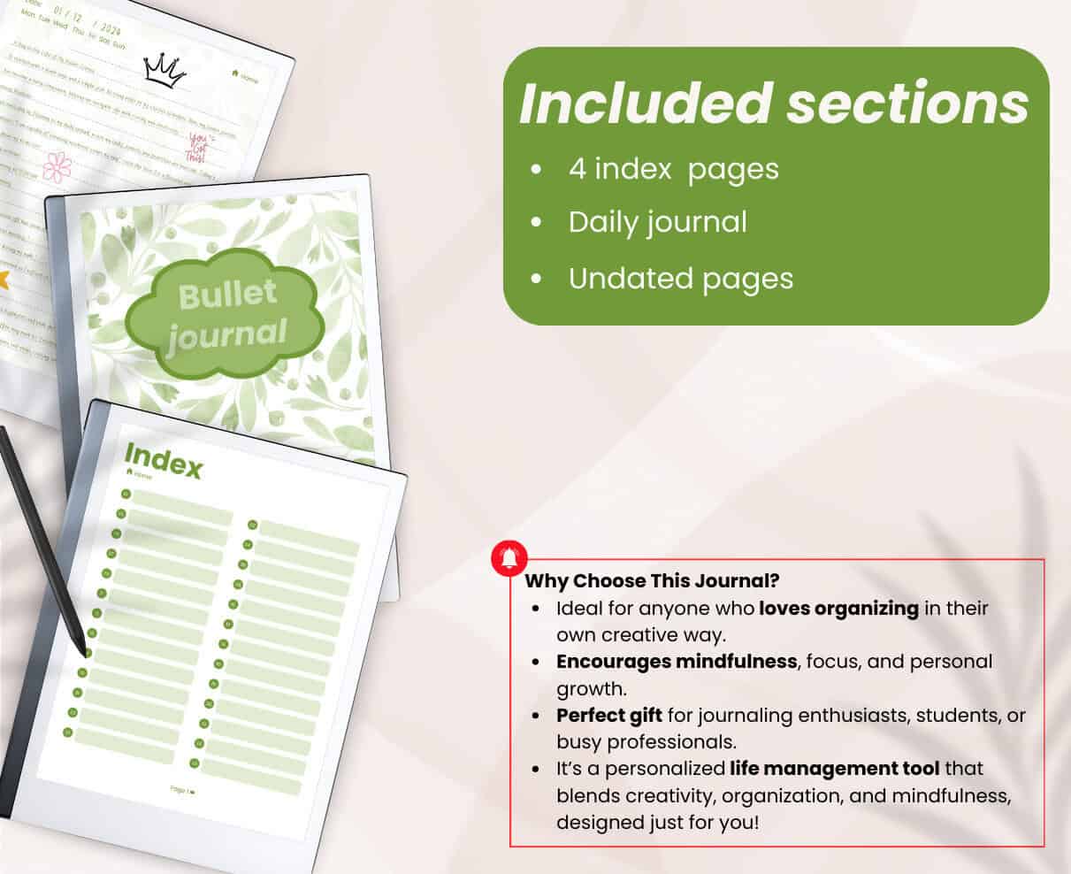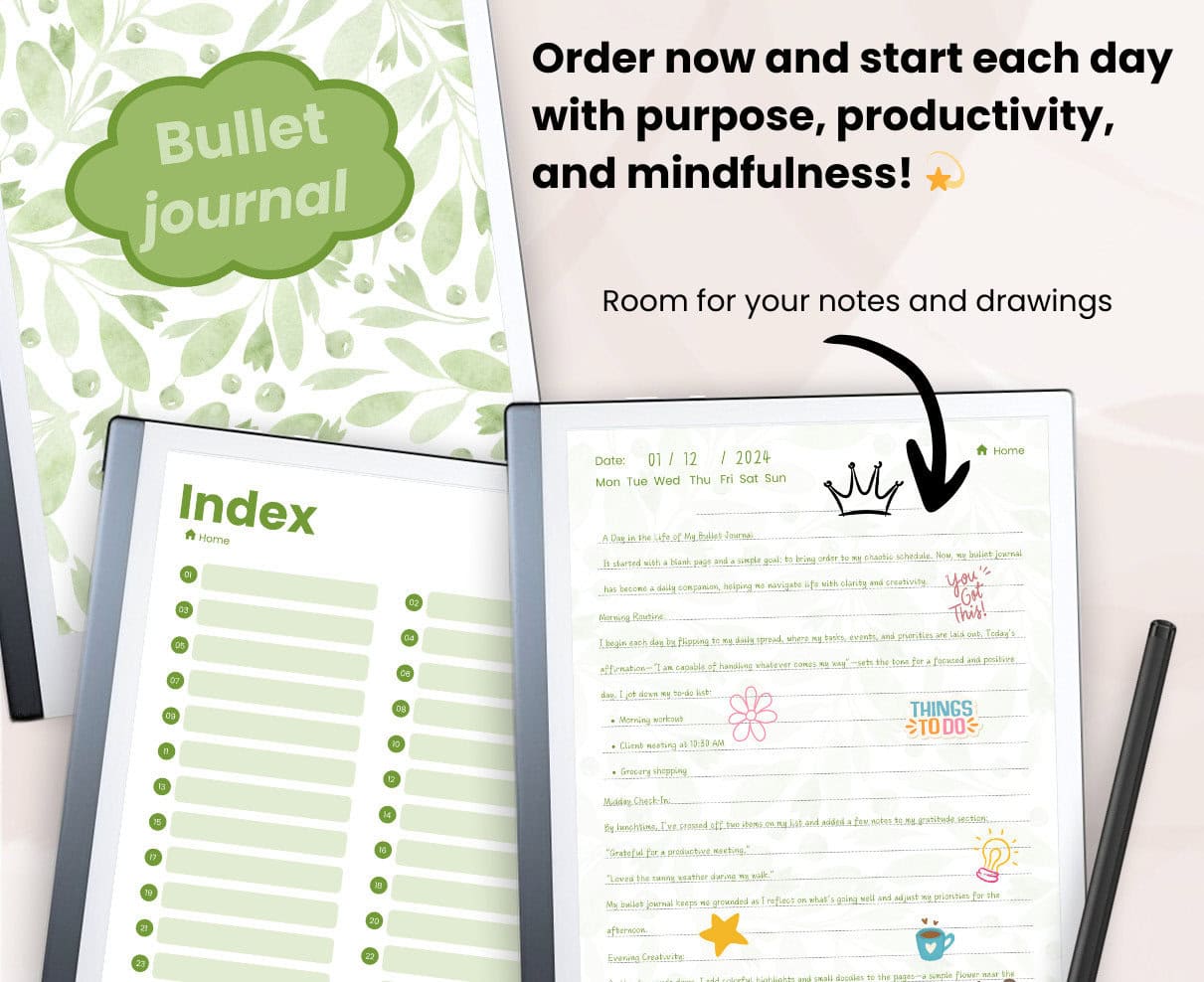 - đ¨ Sparks Creativity: Use your BuJo as both a planner and a creative outletâadd doodles, artwork, or decorative layouts. Declutter your mind by writing things down, reducing stress, and improving focus.