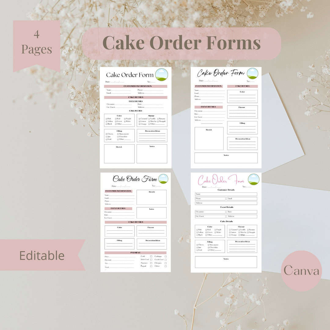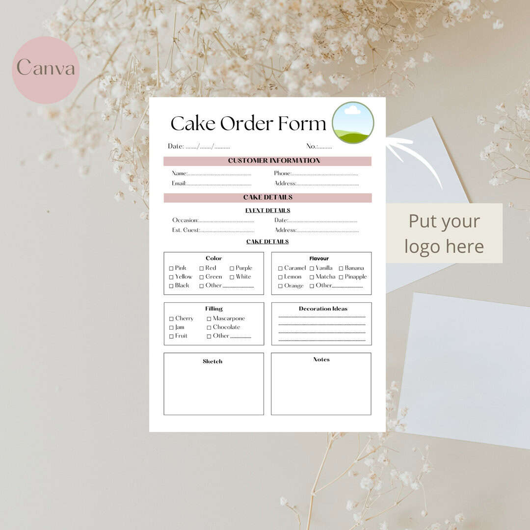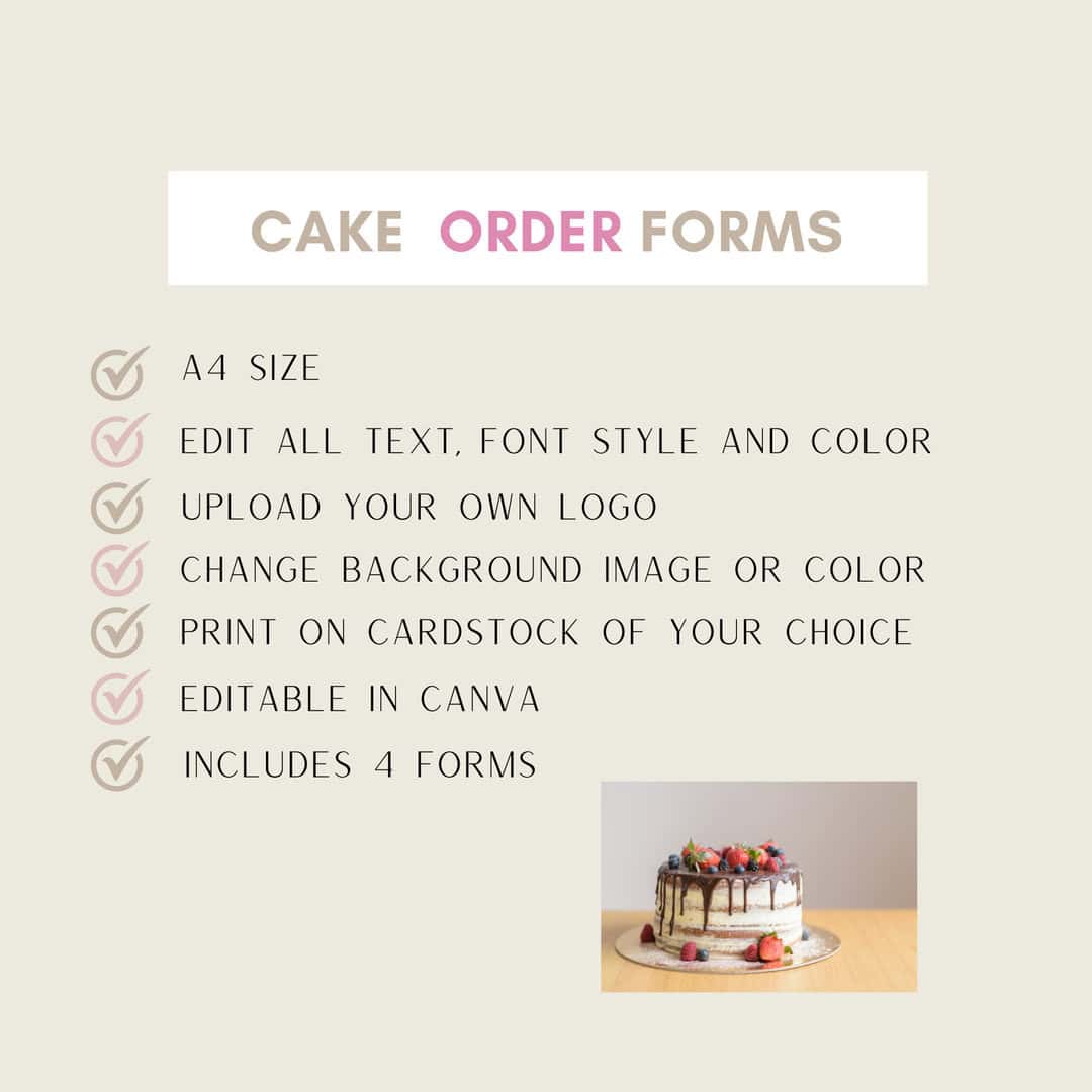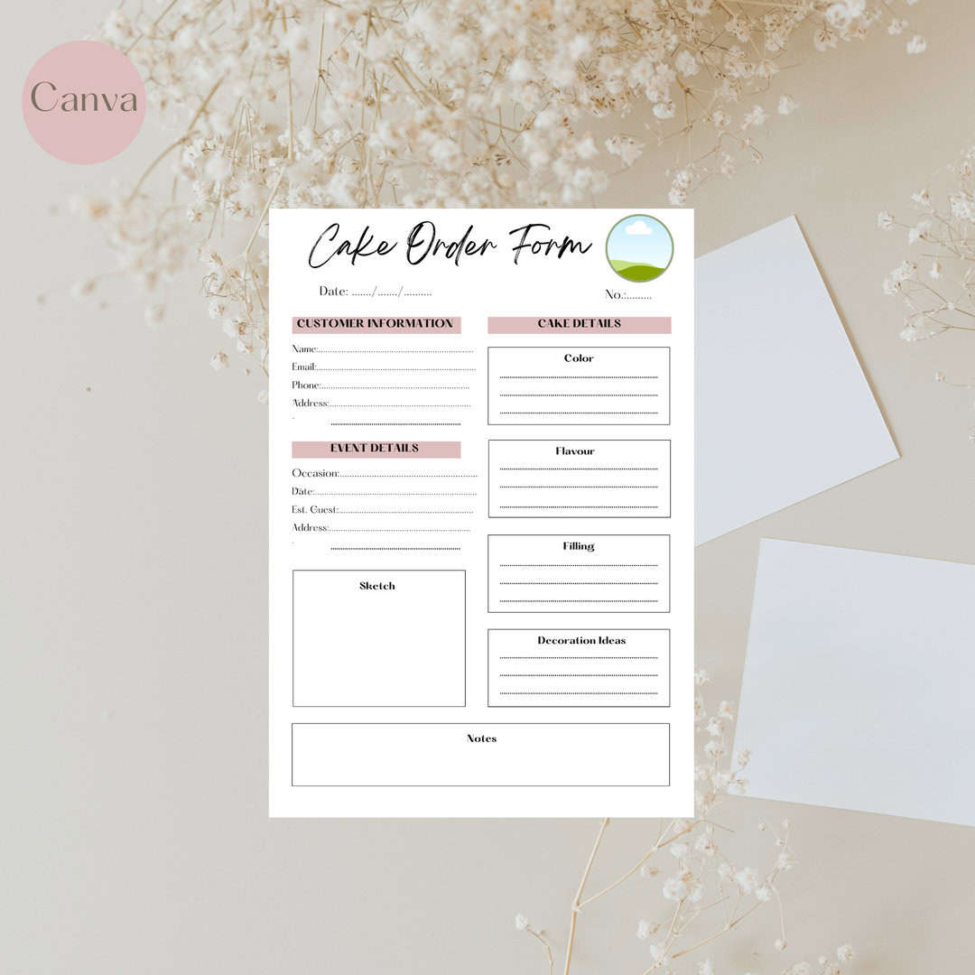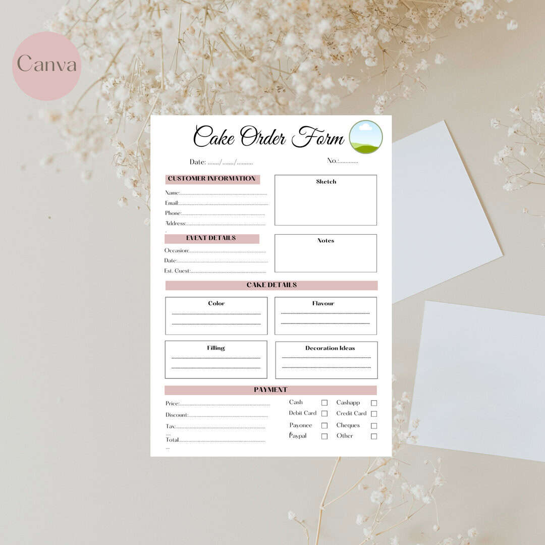 Custom Cake Order Form Canva Template | Printable Bakery Order Form for Small Business | Wedding Cake, Custom Cake, Cake Business