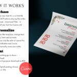 Use this editable Christmas menu to wow your guests and give your table a festive, polished look. It’s perfect as a Christmas card, part of your holiday decorations, or simply to let your guests know what delicious dishes are coming their way.