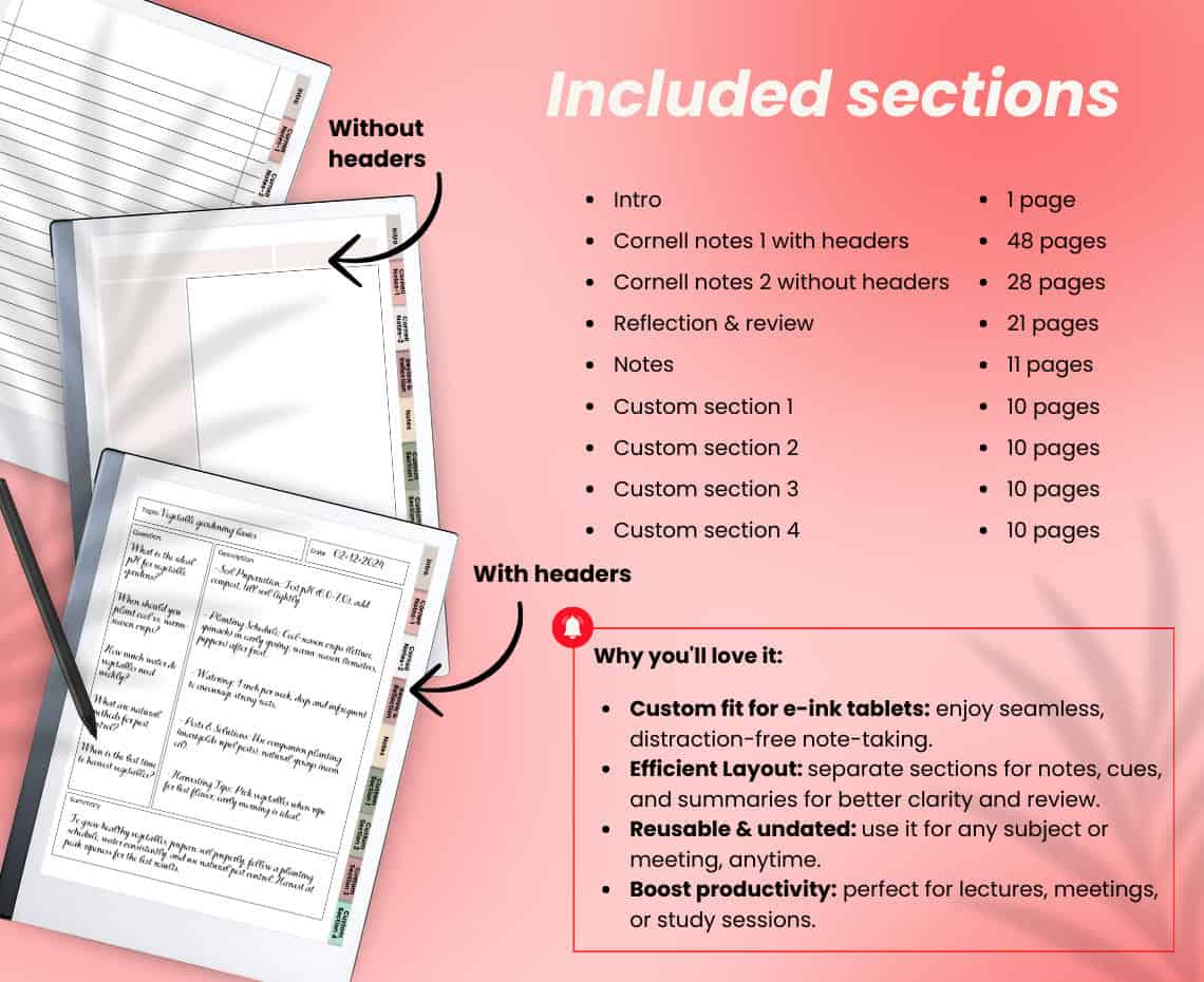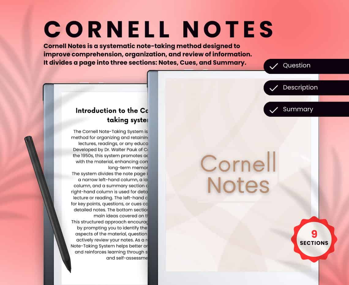 📒 Stay organized with our Cornell Notes Templates for e-ink tablets!