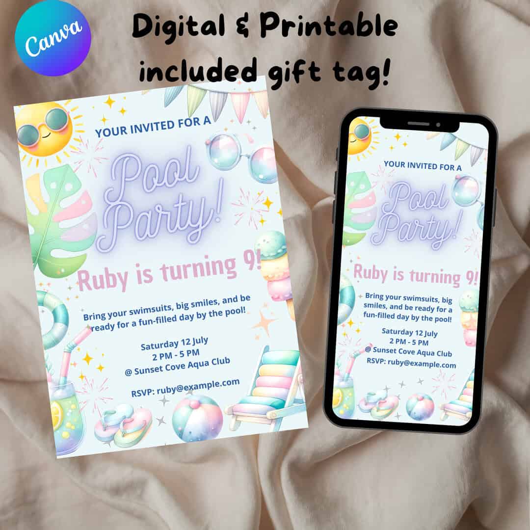 4οΈβ£ Edit, print, or share β and get ready for a super cute pool bash!