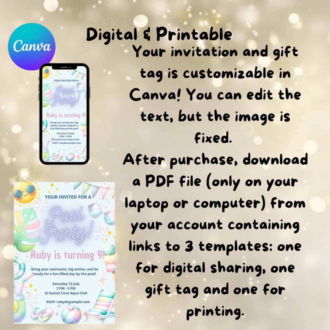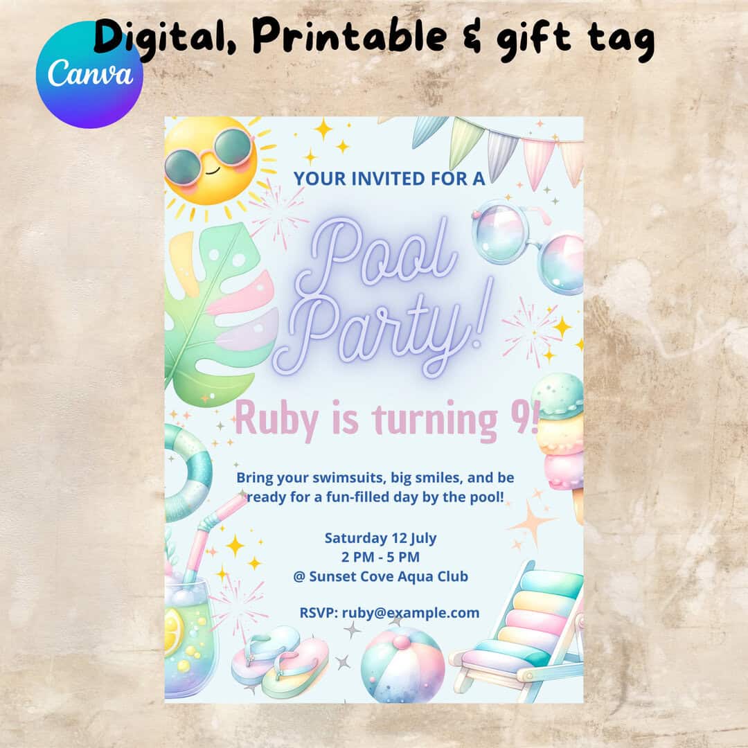 βοΈ Customizable in Canva β edit the text, but keep the pool party magic strong!