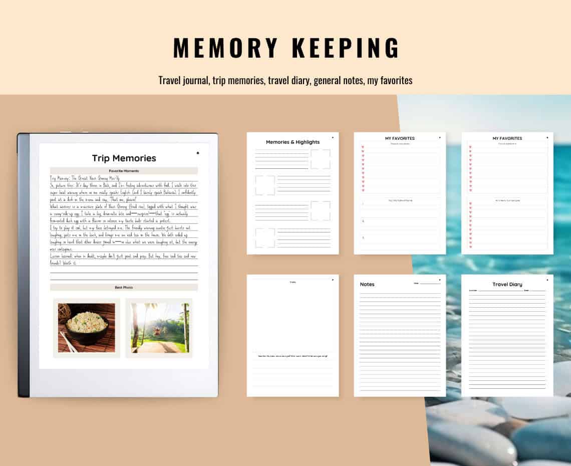 Digital Travel Journal for reMarkable Paper Pro, Vacation Planner & Diary reMarkable template, Adventure PDF Notebook, Travel Organizer, Adventure Log