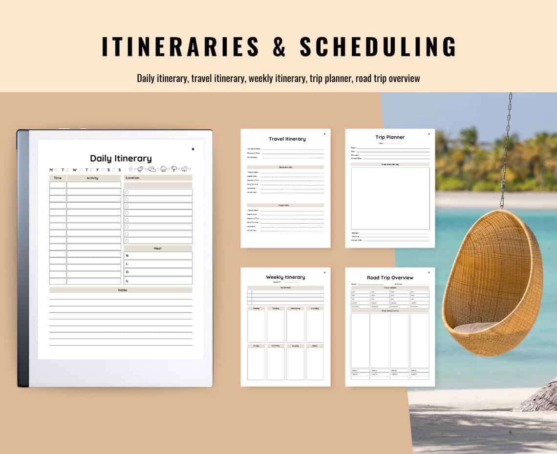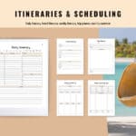 ✔️ Daily itinerary pages for locations, activities, transportation, weather, and expenses