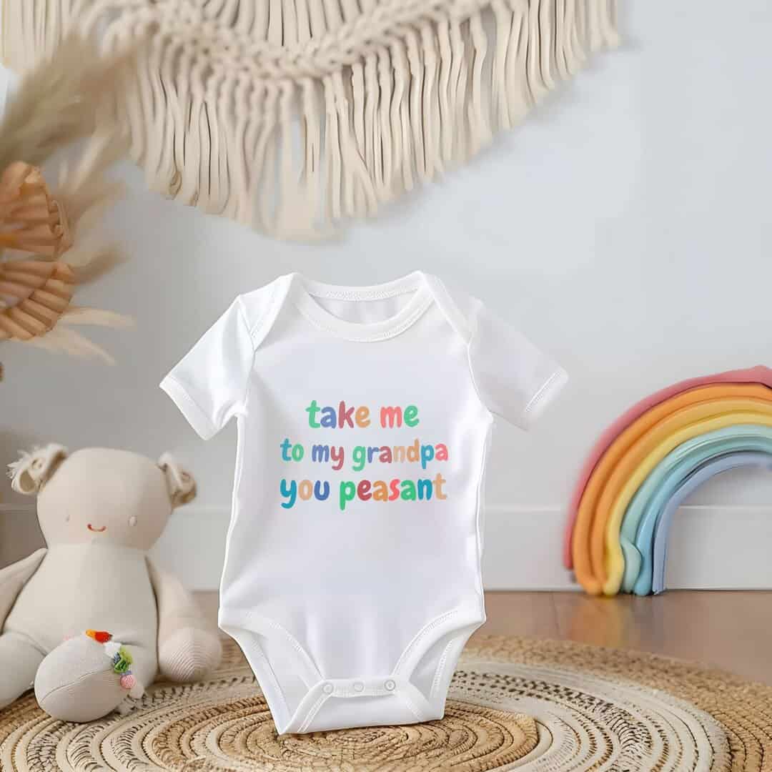 Funny baby romper, take me to my grandpa you peasant, cheeky newborn outfit, baby shower gift, grandpa gift,