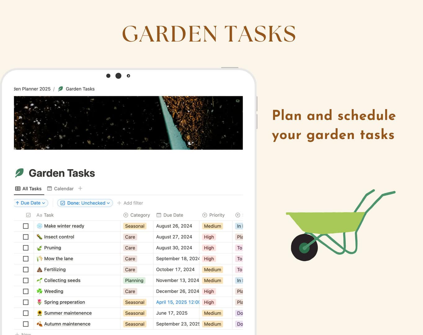 Organize and schedule your daily, weekly, and seasonal garden tasks to ensure your garden flourishes all year round.