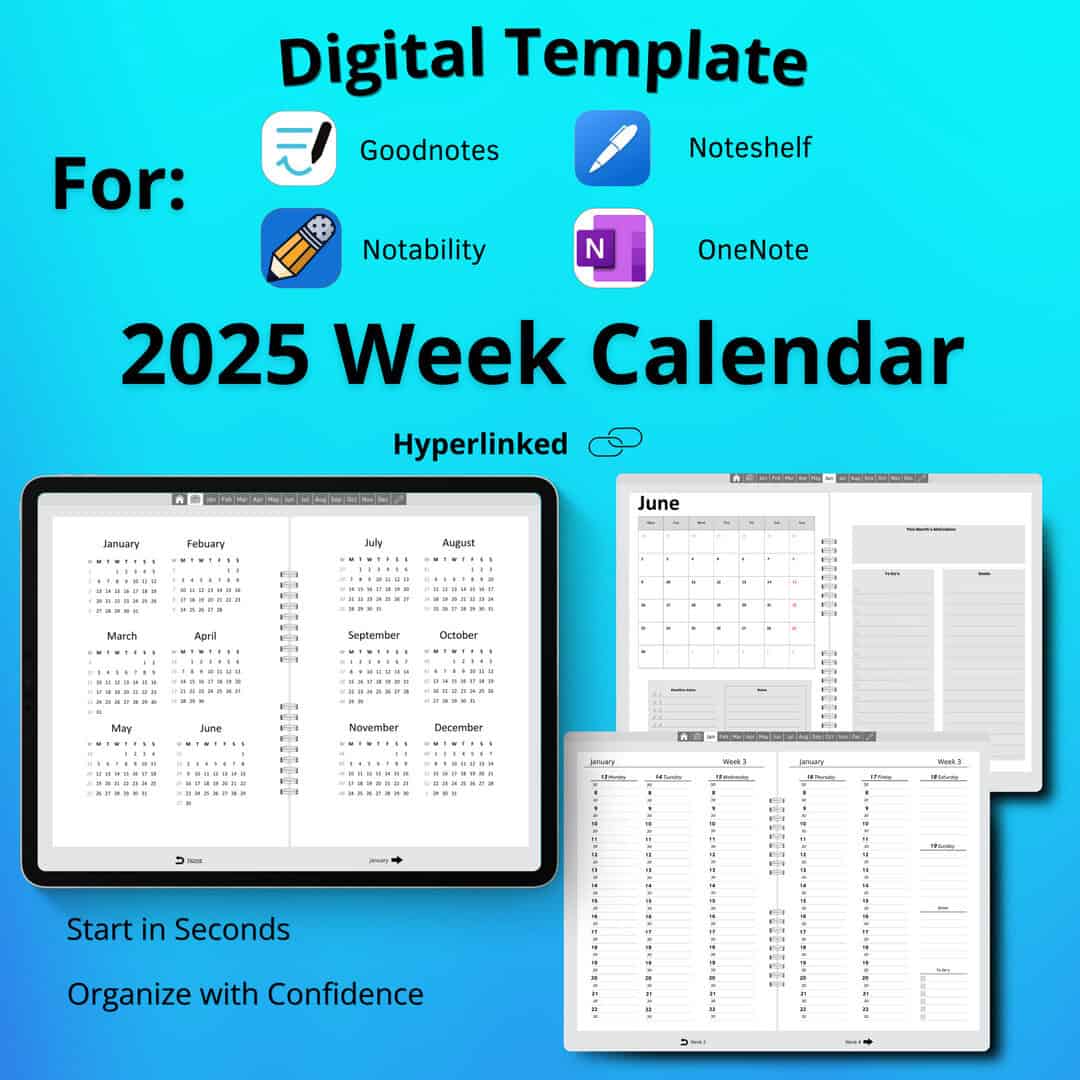 Goodnotes Planner Template 2025 | Weekly Planner Goodnotes | Noteshelf Templates | Hyperlinked planner template | Good Notes Hyperlink