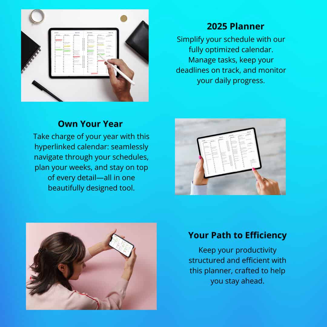 Stay ahead in 2025 with our hyperlinked digital planner templates—perfect for GoodNotes, Notability, and OneNote. Effortlessly organize your tasks, track goals, and manage your schedule with daily, weekly, and monthly layouts. Designed for iPad Pro and other tablets, this planner keeps you focused and productive wherever you go.