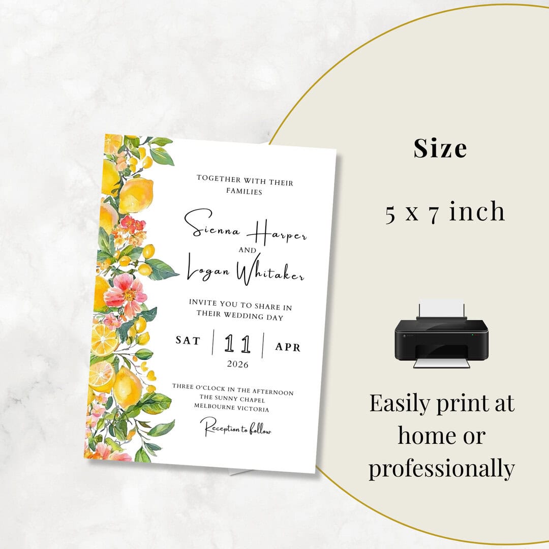 Lemon Wedding Invitation Template • Lemon Blossom Collection • Mediterranean Wedding Invitation