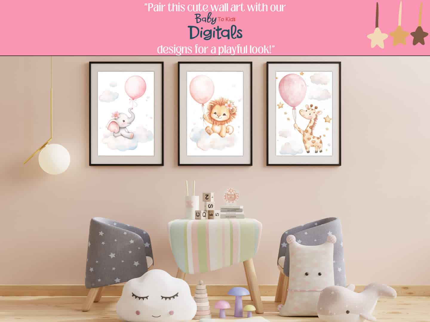 💡 Want the complete set? Get the Watercolor Pink Balloon Safari Collection featuring the Giraffe, Lion & Elephant with soft pink balloons – the perfect matching trio for your nursery! 🎈🦒🦁🐘 Click here to shop the full bundle: Watercolor Pink Balloon Safari Collection on Temzli!