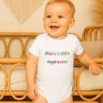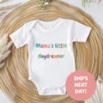 Celebrate your little one’s dreamy spirit with this adorable Mama’s little daydreamer onesie in cheerful, colorful lettering. Perfect for everyday wear, photoshoots, or as a thoughtful gift for new moms.