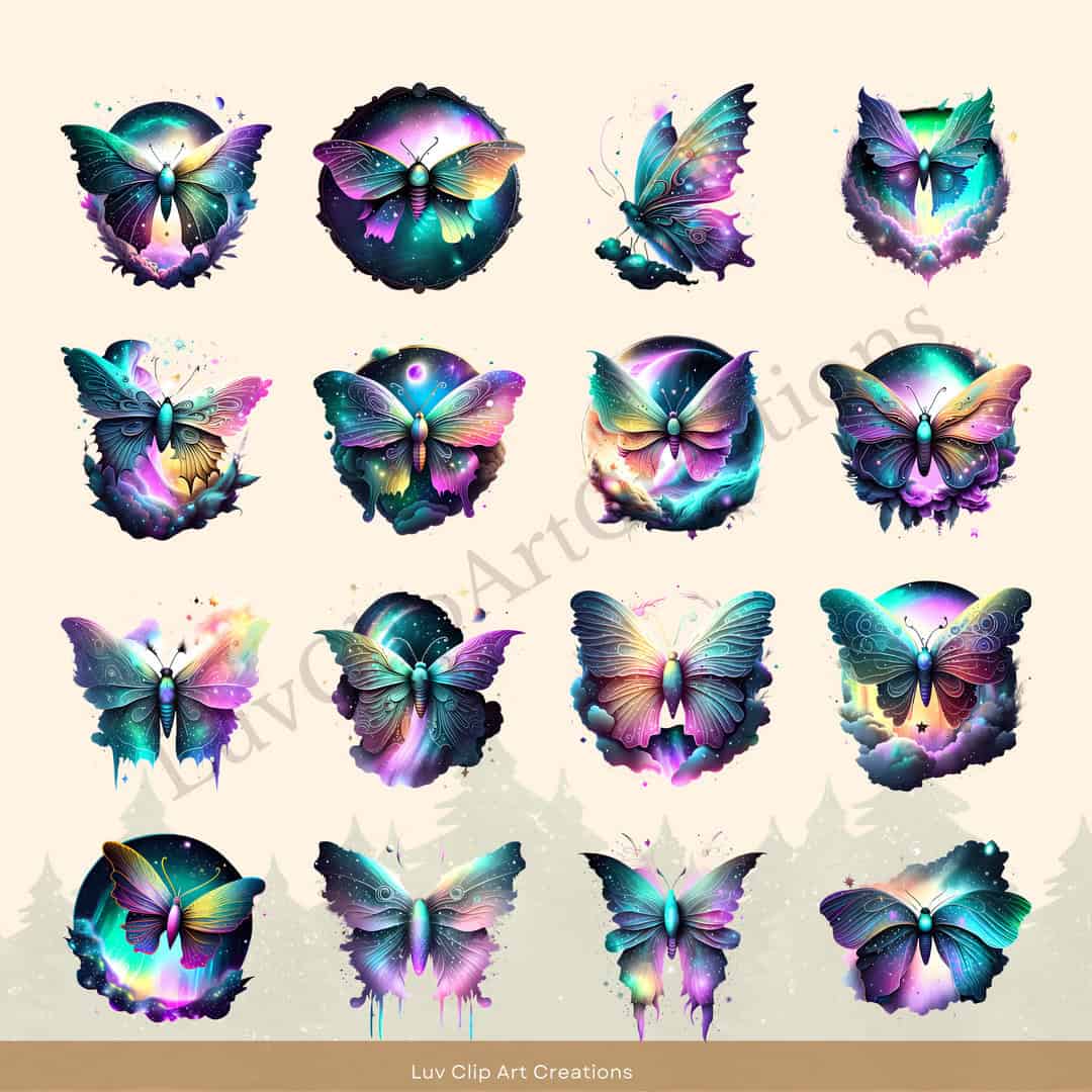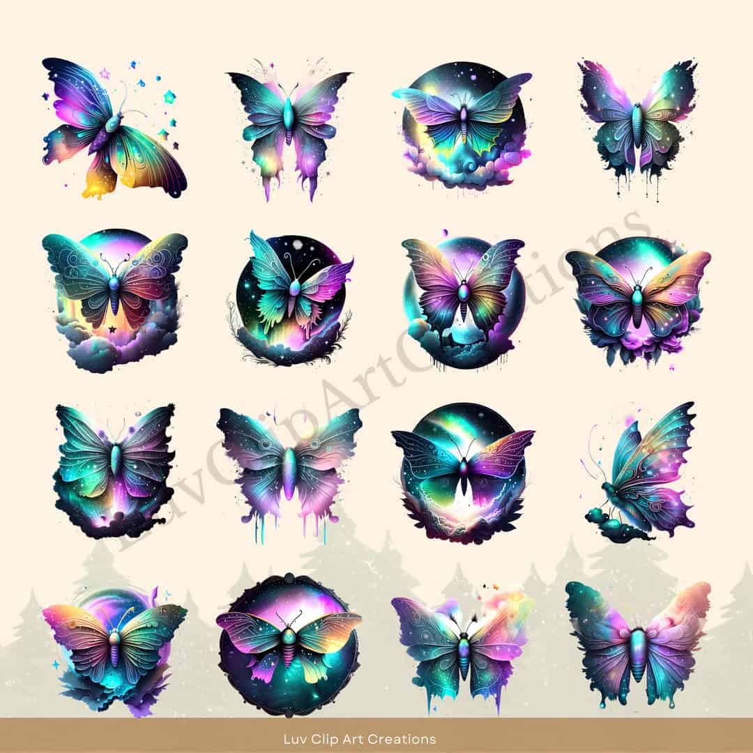 Each design, from the enchanting galaxy butterflies to the ethereal side-view butterflies, captures the mystical essence of these celestial creatures.