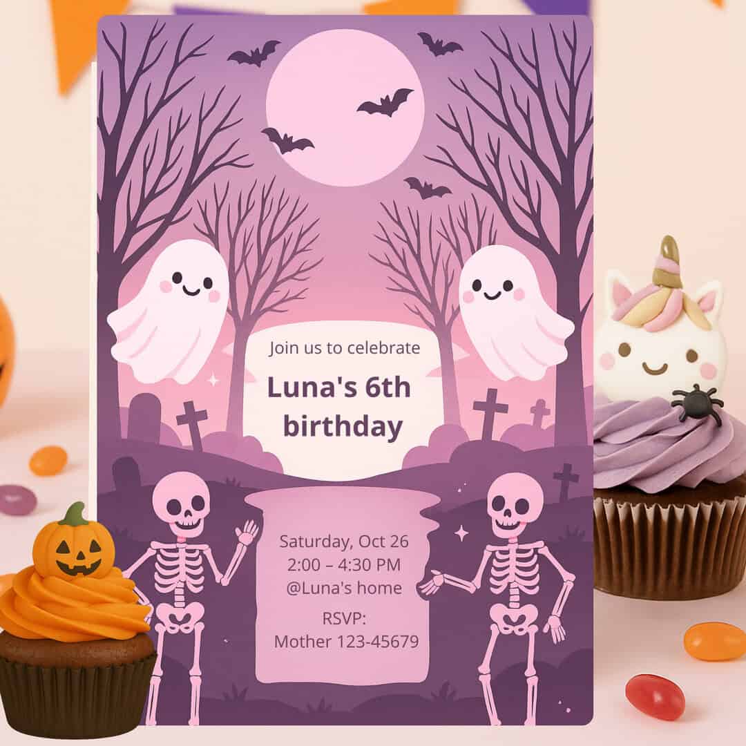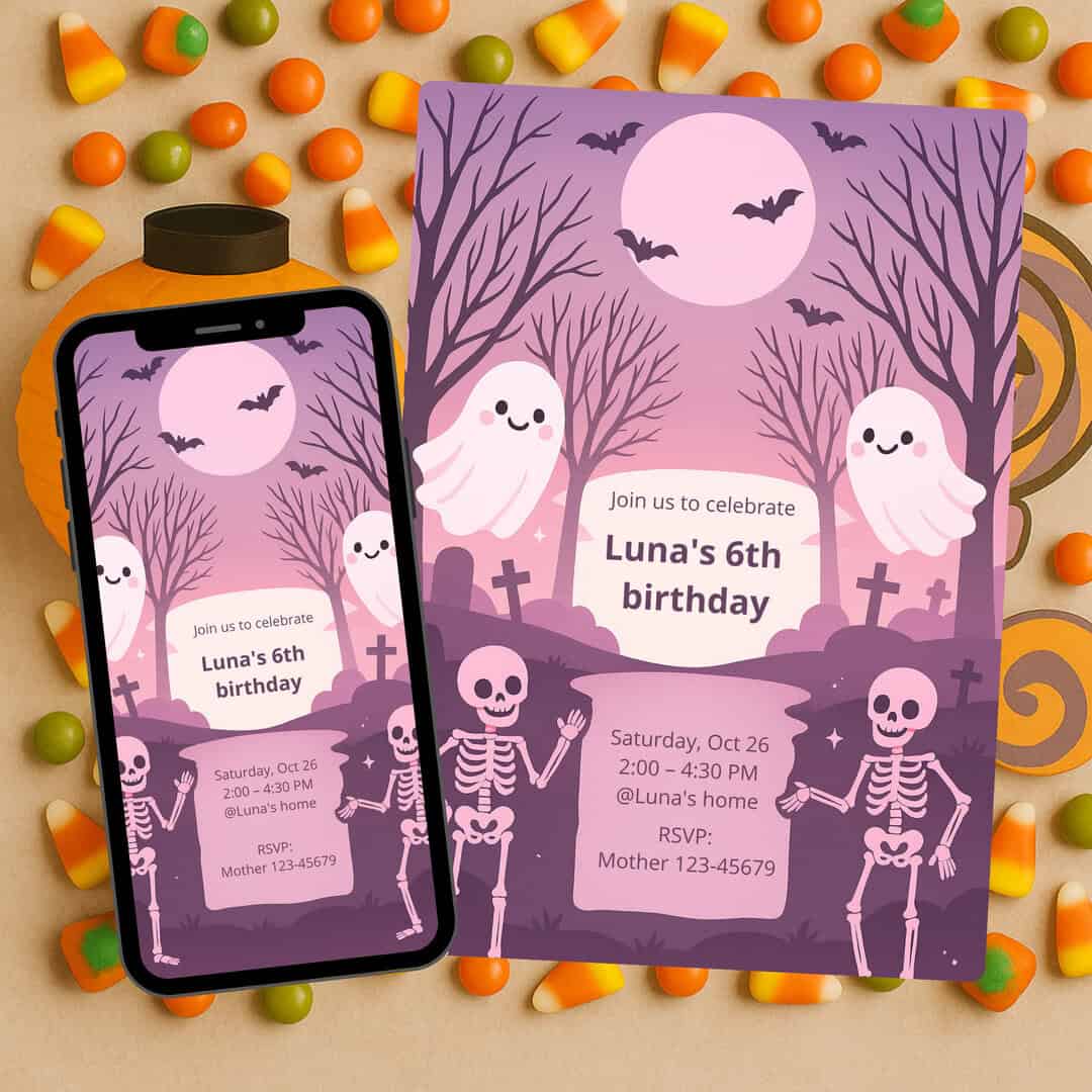 ๐โจ Cute Pink Halloween Birthday Invitation โ Spooky style! โจ๐