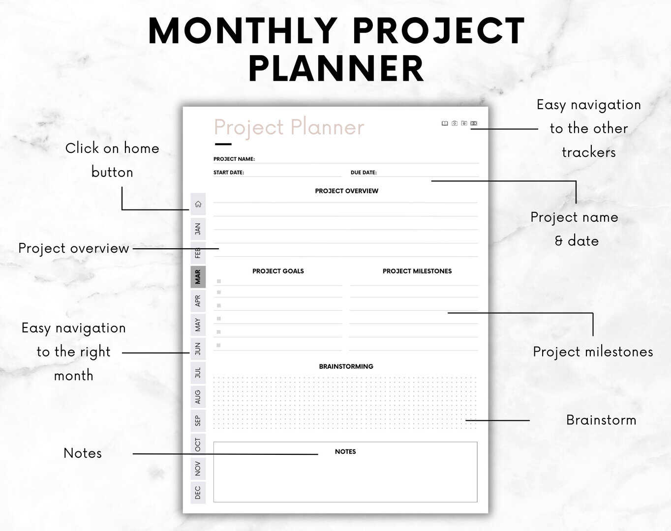 🎯 Monthly Project Planner: Achieve your objectives with our structured project planner. Manage your projects seamlessly with goal-setting tools, milestone trackers, and brainstorming sections, keeping your productivity on point. 🚀🎯
