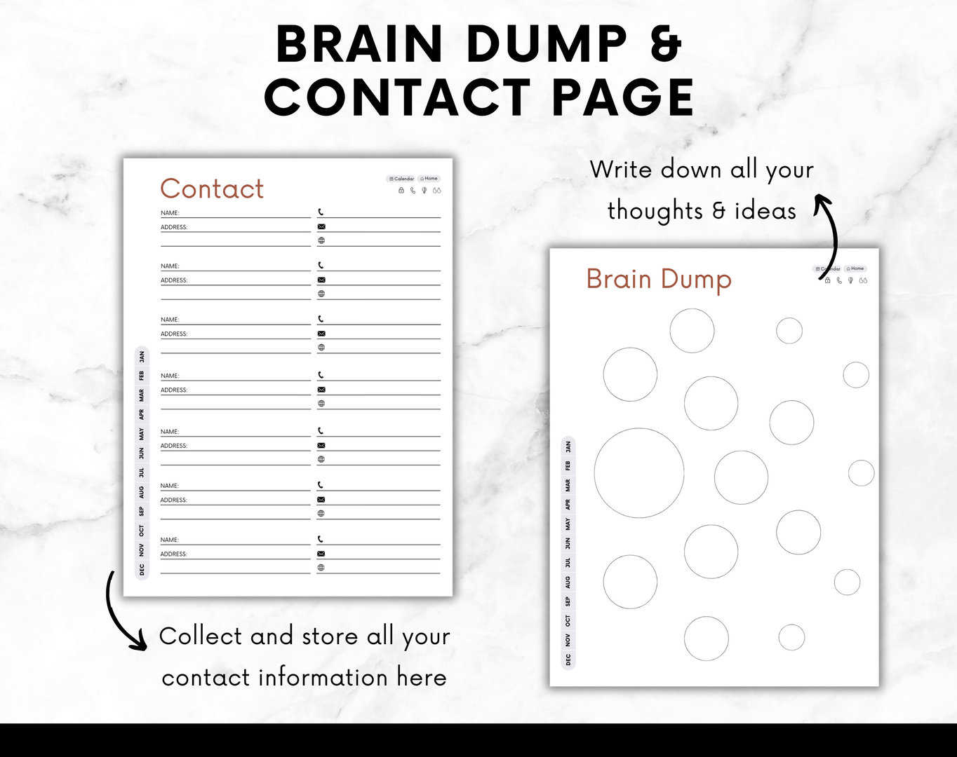 ๐ง Monthly Brain Dump: Organize your thoughts and ideas with our brain dump section, perfect for noting down creative plans, ideas, or anything on your mind. ๐ญโ๏ธ