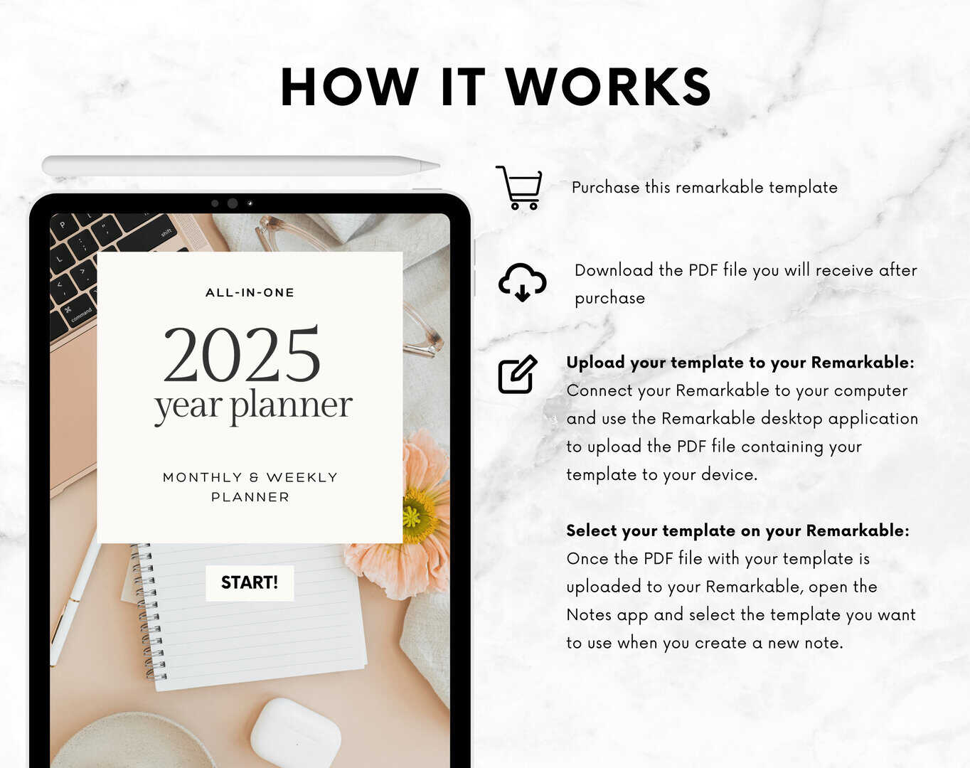 Make 2025 your most organized and productive year with our all-in-one Monthly and Weekly Planner, designed specifically for the Remarkable tablet. This planner is your go-to tool for staying focused and achieving your goals. 📒✨