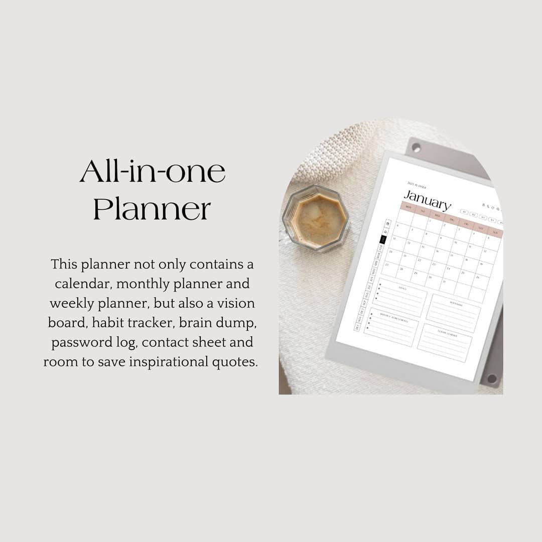 reMarkable Paper Pro 2025 Planner with Calendar, Monthly Planner, Habit Tracker, Vision Board, Brain Dump – Hyperlinked Planner Paper Pro
