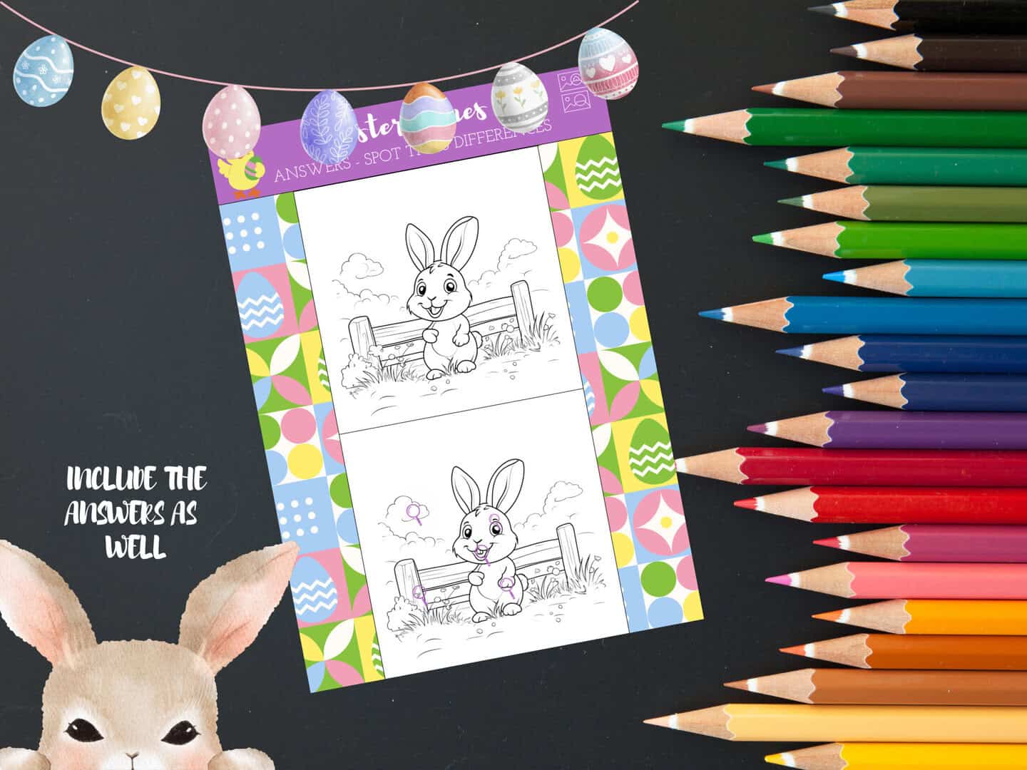 ✔ 4 fun Spot the Difference puzzles – Easter bunnies, eggs, chicks & spring designs!