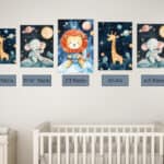 Watercolor Space Safari Art – Astronaut Giraffe, Lion & Elephant, Cosmic Baby Decor, Nursery Digital Print, Instant Download