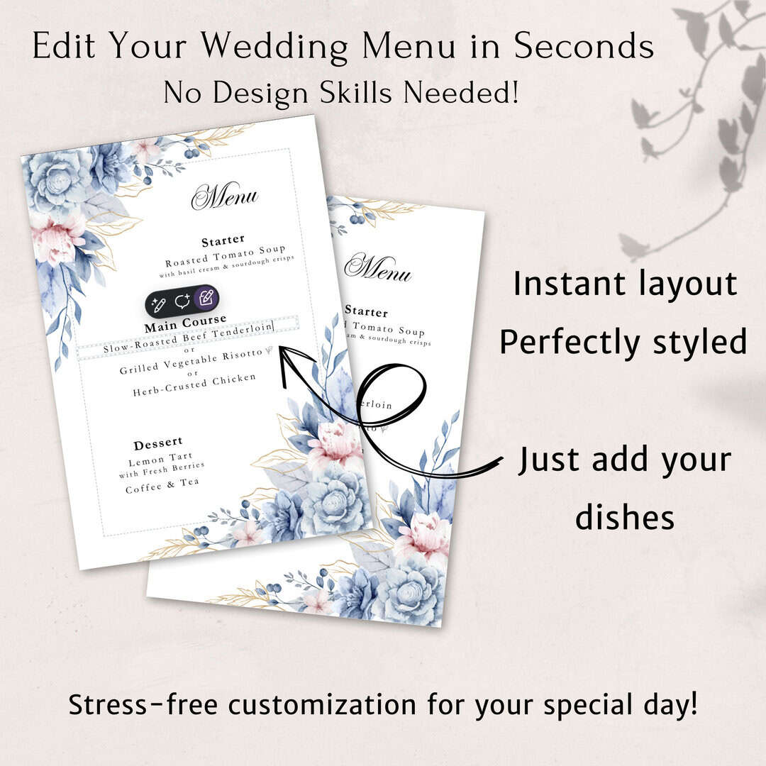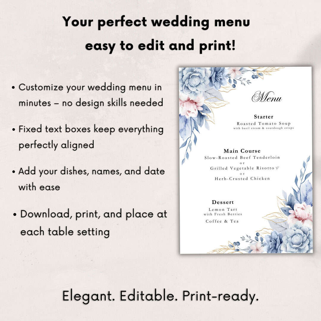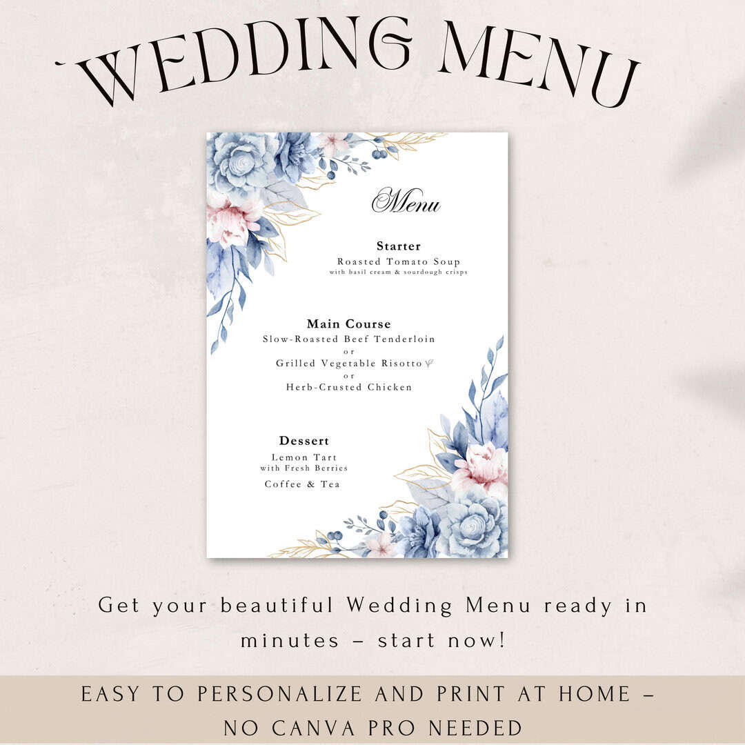 Wedding Menu Template Canva, Printable Wedding Menu Card Design, Editable Dinner Menu, Wedding Reception Table Menu