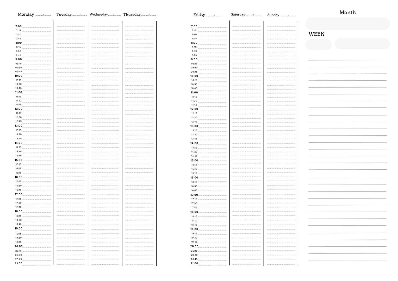 WEEK | planner | printable | digital daily planner | landscape | 07:00 – 21:00 hour