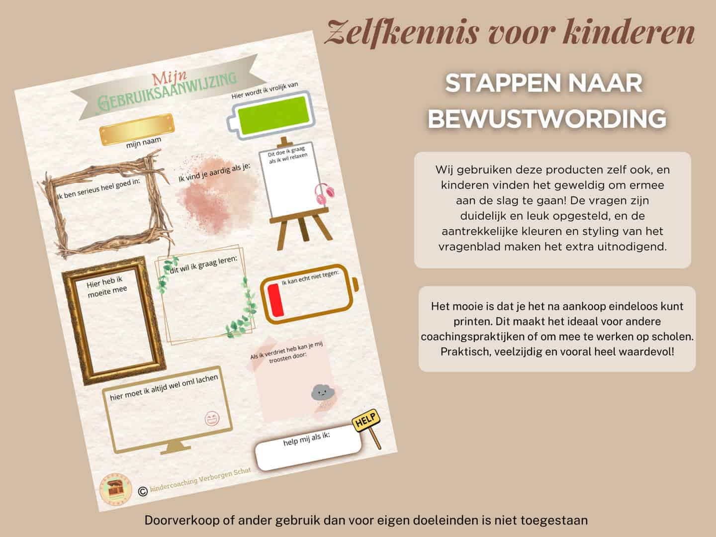 Ontdek de kracht van zelfonderzoek bij kinderen met deze uitgebreide coaching-sheet! Dit hulpmiddel is een waardevolle activiteit om kinderen te begeleiden in het ontdekken van hun eigen identiteit en zelfwaardering.